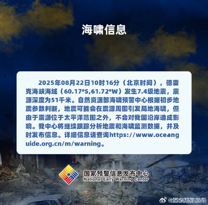 德雷克海峡海域发生7.4级地震 不会对我国沿岸造成影响德雷克海峡海域发生7.4级地震 不会对我国沿岸造成影响